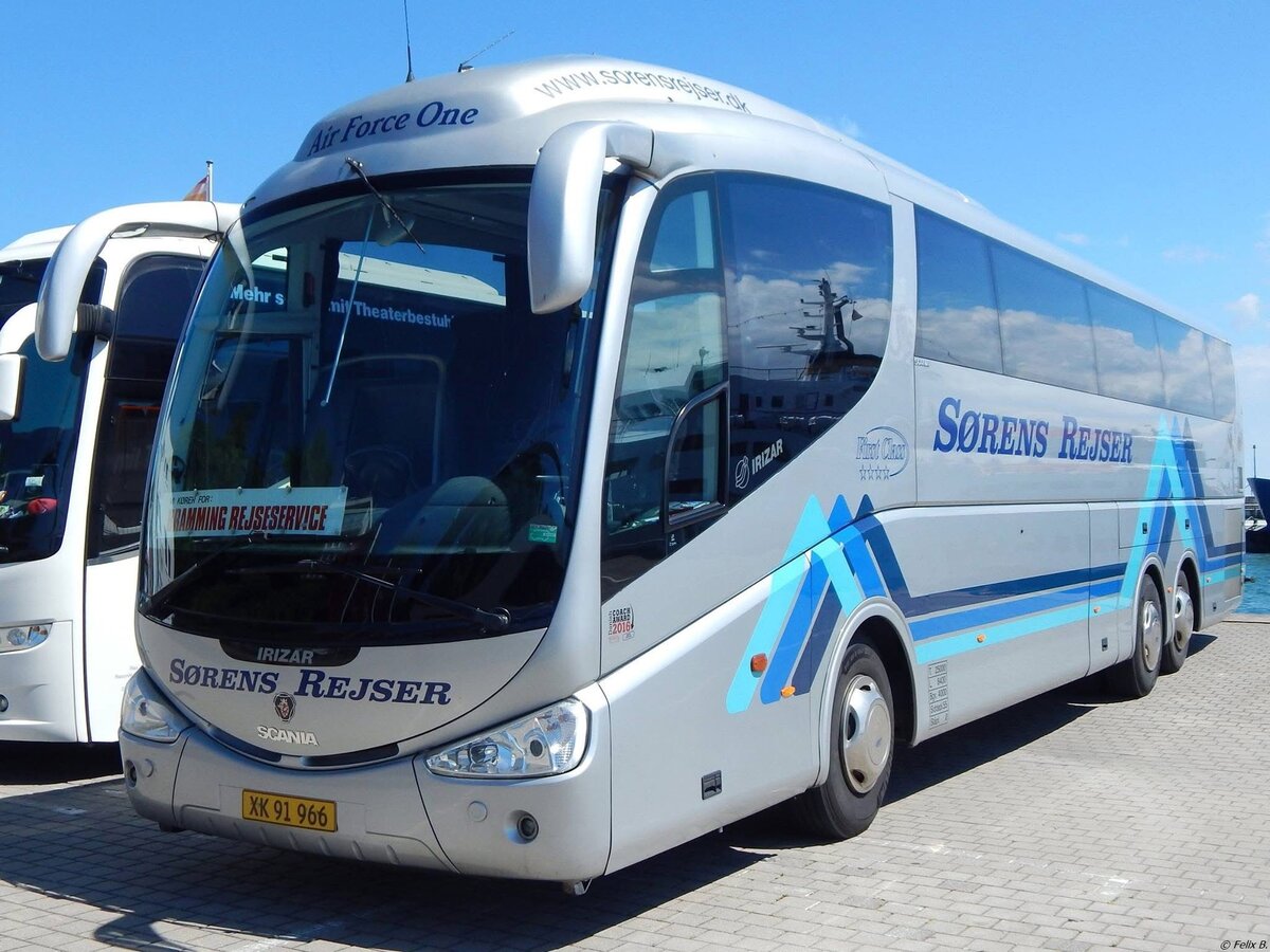 Scania Irizar von Sørens Rejser aus Dänemark im Stadthafen Sassnitz im Jahr 2016