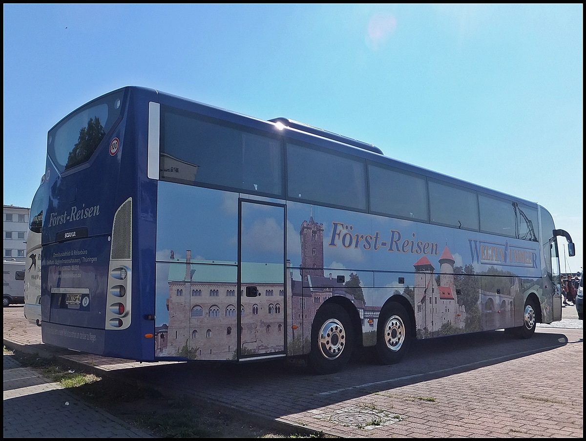 Scania OmniExpress von Först-Reisen/Weltenbummler aus Deutschland im Stadthafen Sassnitz am 10.08.2013