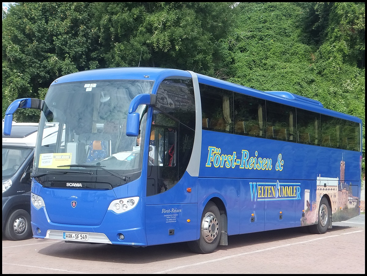 Scania OmniExpress von Först-Reisen/Weltenbummler aus Deutschland im Stadthafen Sassnitz am 18.08.2013
