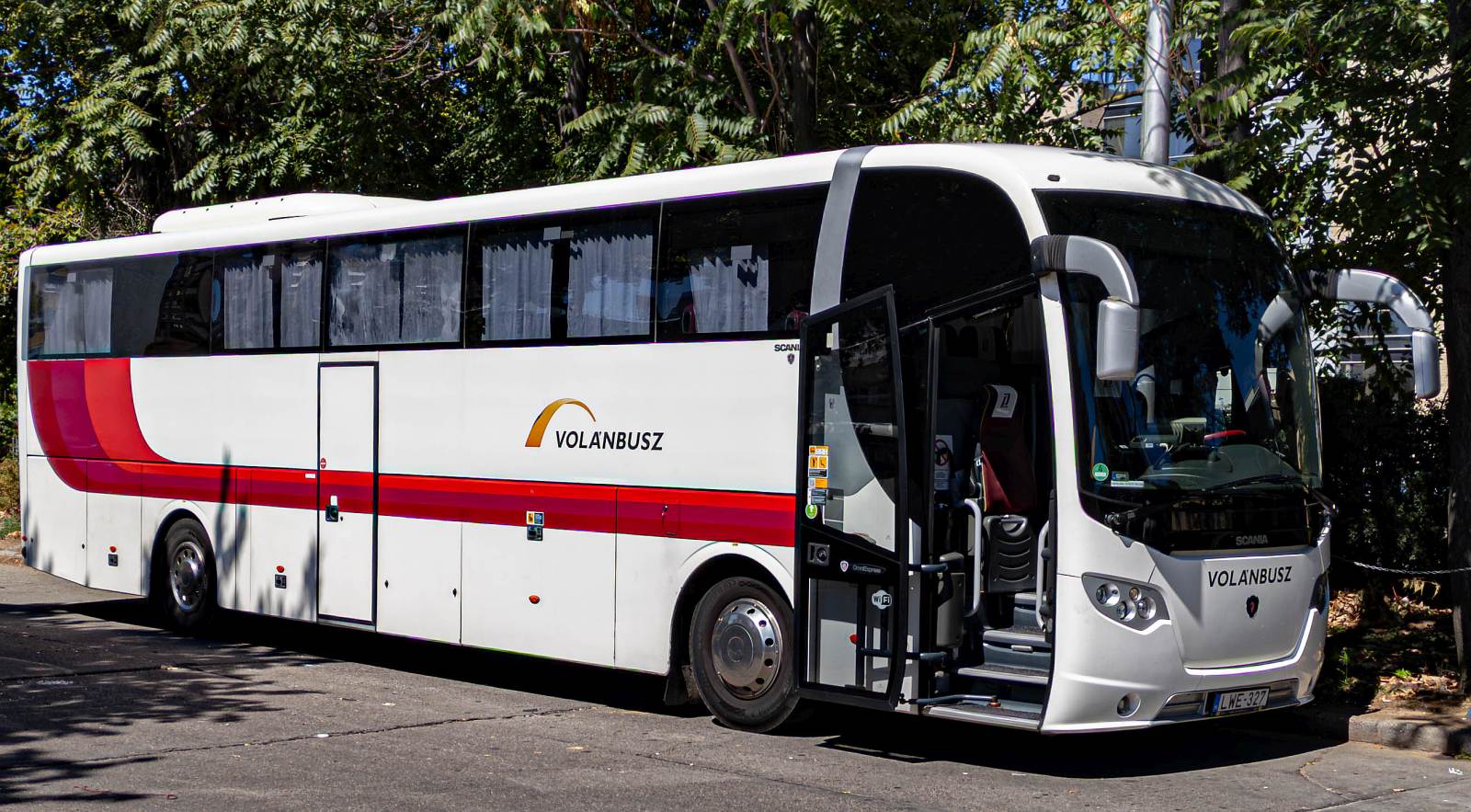 Scania OmniExpress. Langstreckenbus der staatlichen öffentlichen Regional- und Fernverkehrsfirma  Volánbusz . Modelljahr: 2011, foto: 08.2025.