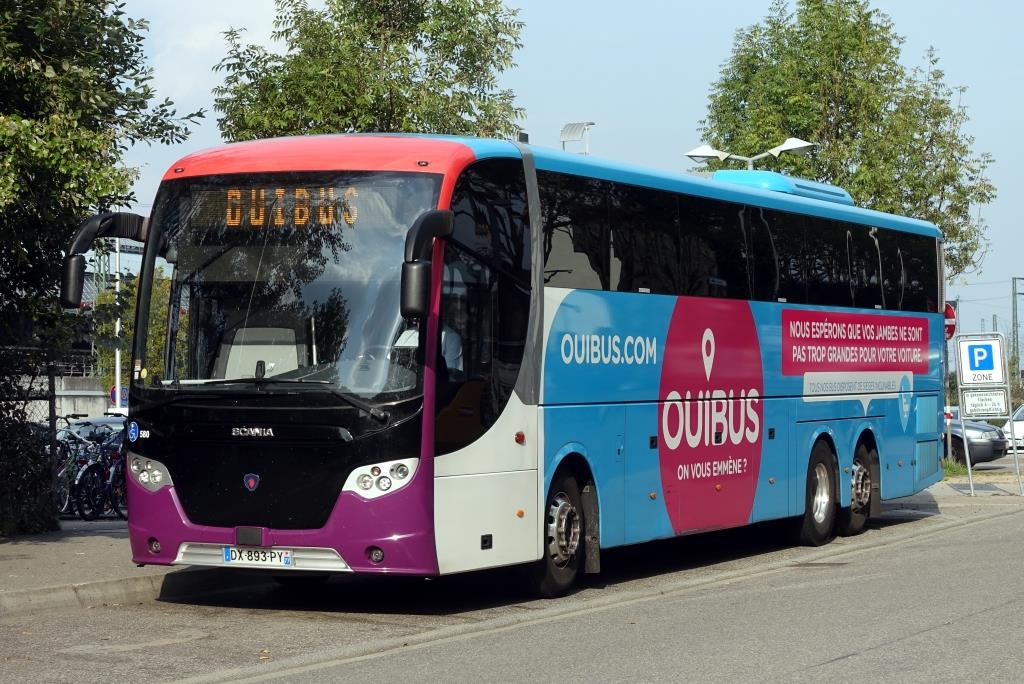 Scania OmniExpress "Ouibus", Fernlinienbus der französischen Eisenbahn SNCF, Karlsruhe 26.09.2017
