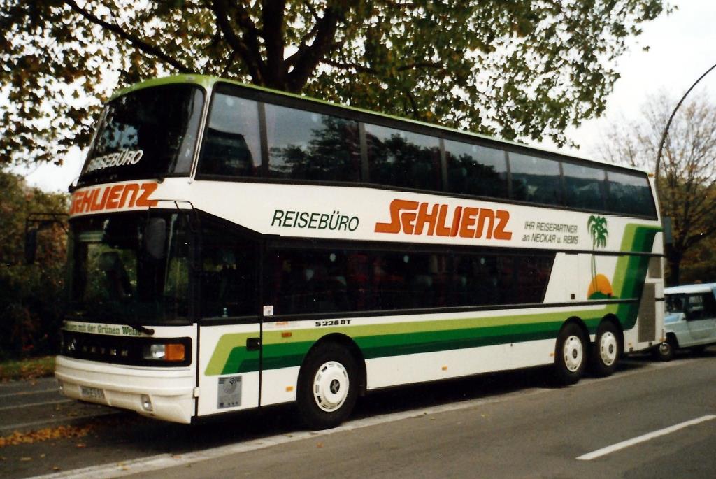 Aus den 90-er Jahren: Setra S 228 DT  Schlienz , in Heidelberg