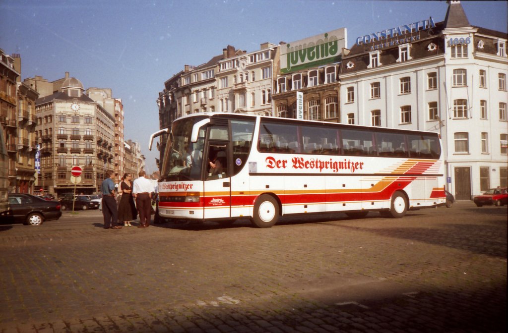 Brüssel, Setra-Bus des 'Reisedienst Westprignitz' am Square de l'Aviation (Juni 1996)