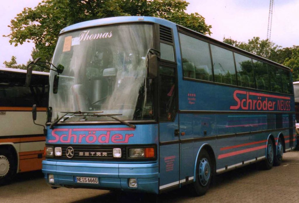 Setra S215 HDH, aufgenommen im August 1998 auf dem Parkplatz der Westfalenhallen in Dortmund.