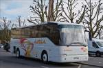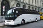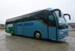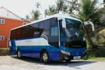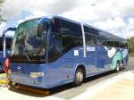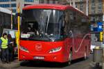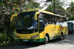 DAKAR (Région de Dakar), 26.03.2016, Reisebus des chinesischen Herstellers Higer; im Hintergrund das Monument du millenaire