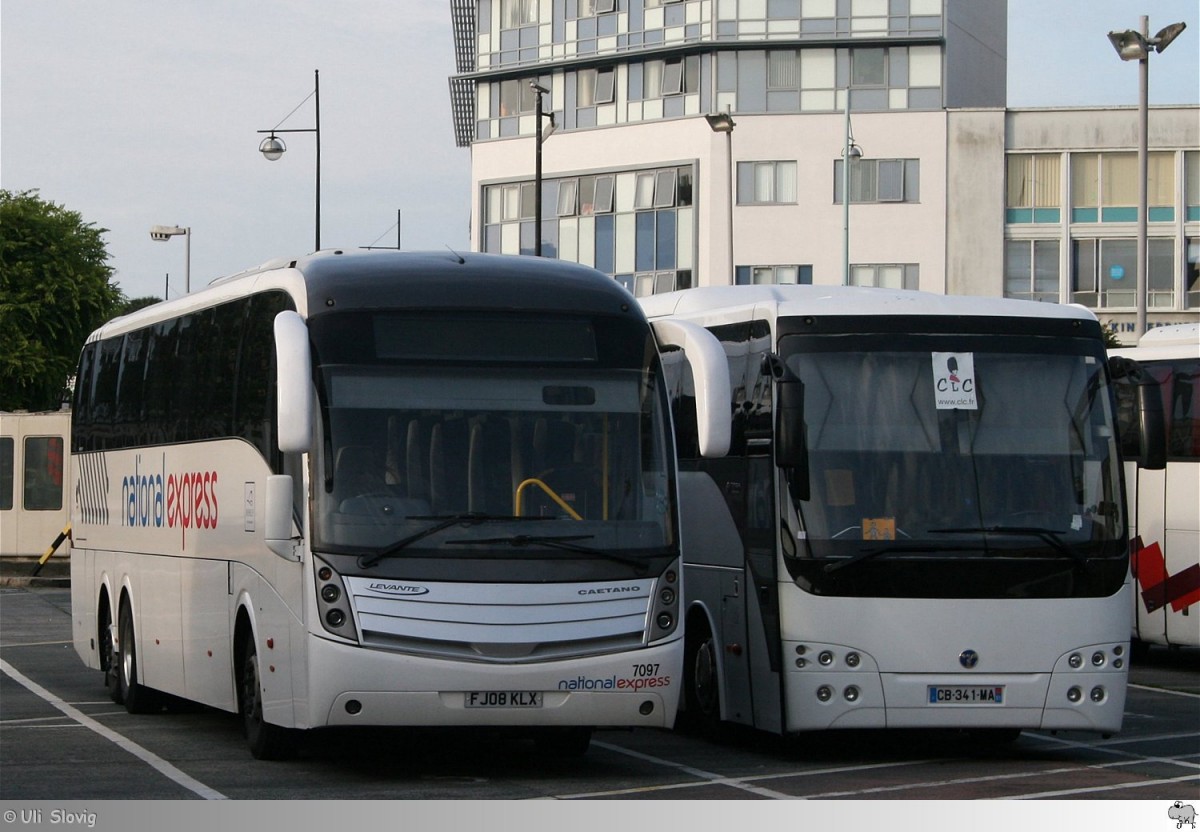 Salvador Caetano Levante "National Express" und Temsa Safari HD "CLC". Aufgenommen am 8. August 2014 in Plymouth / England.