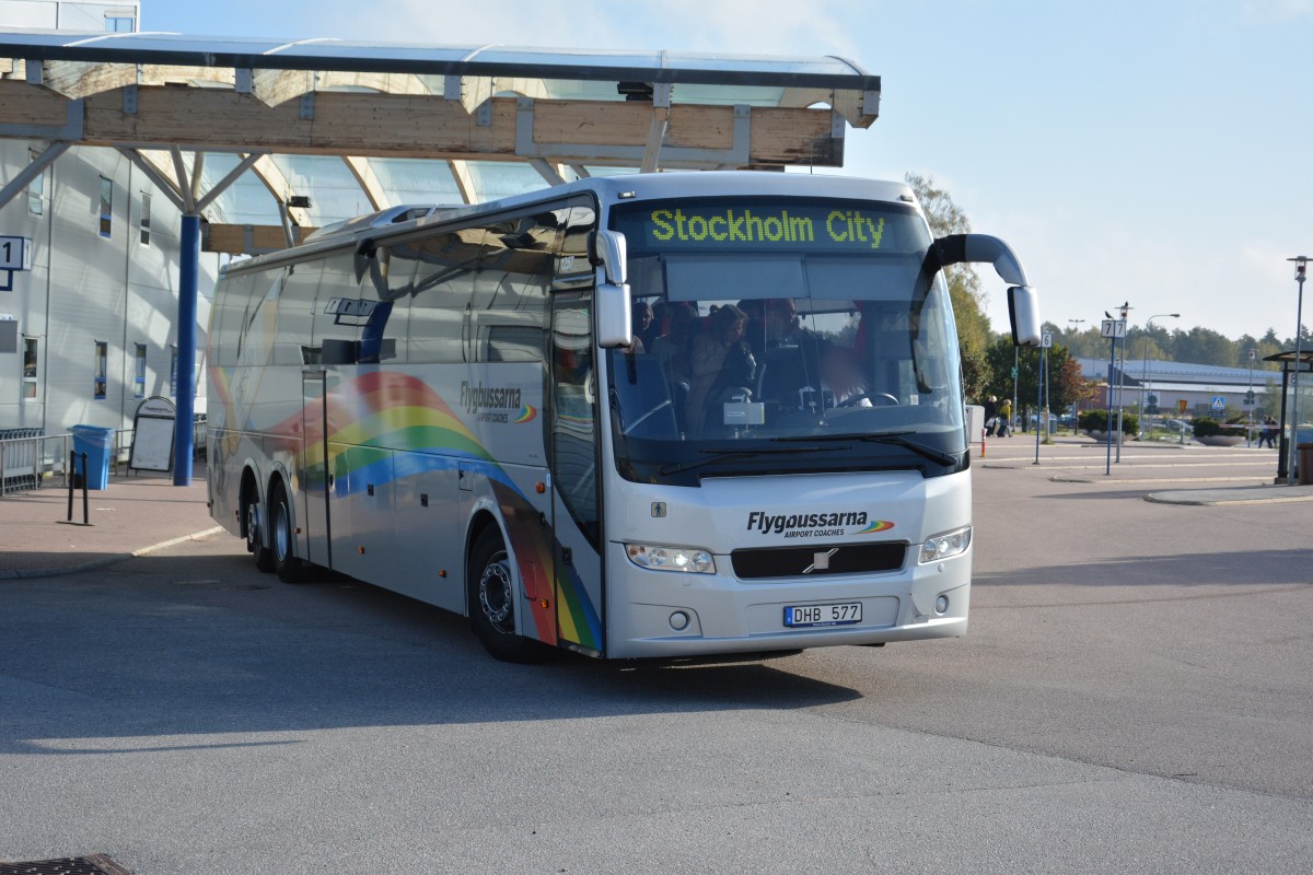 Dieser Volvo 9700 mit dem Kennzeichen DHB 577 steht kurz vor seiner Abfahrt nach Stockholm. Aufgenommen am 14.09.2014 Flughafen Stockholm-Skavsta.