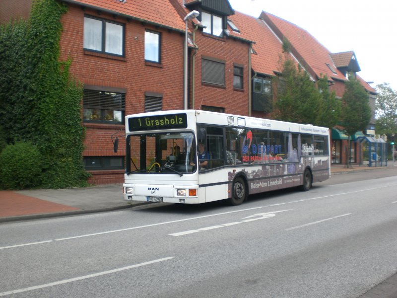 MAN Niederflurbus 1. Generation auf der Linie 1 nach Grasholz am Bahnhof Eckernförde.