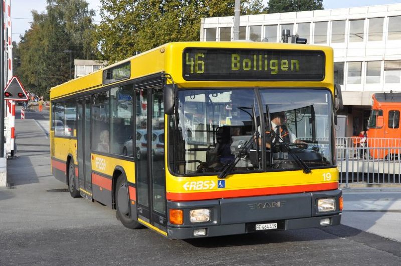 RBS, Worblaufen Nr. 19/BE 464'419 MAN (ex AAGL) am 20. Oktober 2009 beim Bahnhof Bolligen.