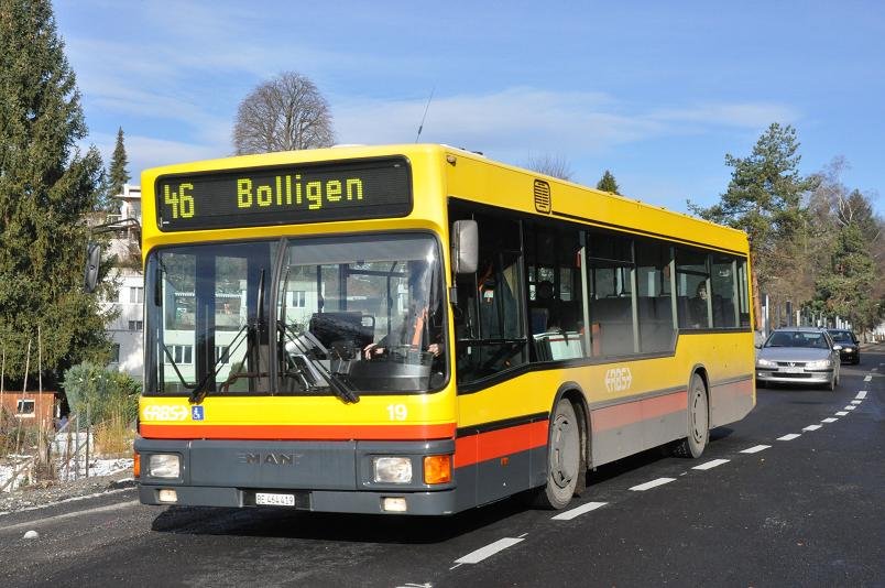 RBS, Worblaufen Nr. 19/BE 464'419 MAN (ex AAGL) am 3. Dezember 2009 in Bolligen.