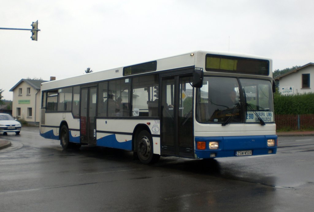 MAN Niederflurbus 1. Generation auf der Linie 290 nach Świnoujście nahe der Haltestelle Bansin Alte Molkerei.