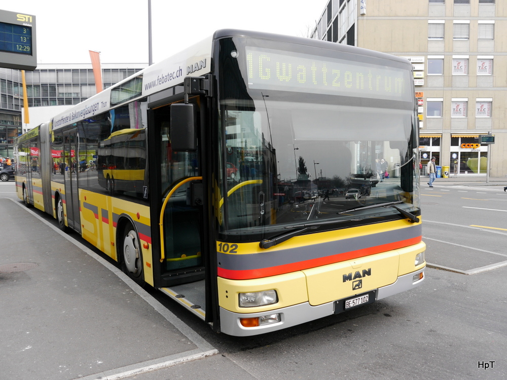 STI - MAN  Nr.102  BE  577102 bei den Bushaltestellen vor dem Bahnhof Thun am 15.03.2014