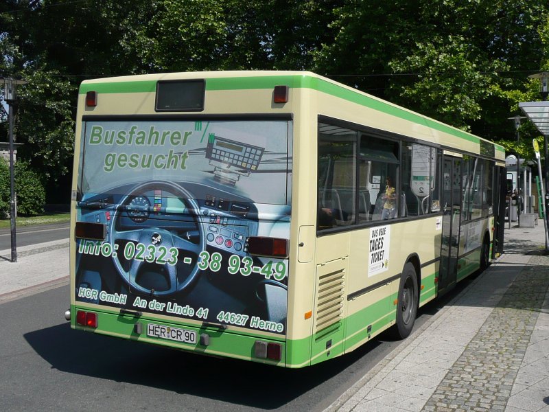 24.06.08,MAN der HCR Nr.90,Busbahnhof Wanne-Eickel Hbf.Werbung:Busfahrer gesucht.