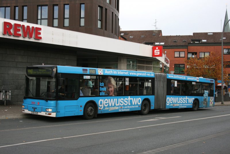 Wagen 1648 mit Werbung https://www.gewusst-wo.de am Dortmund Hörde Bf mit der Linie 440 nach Oespel.