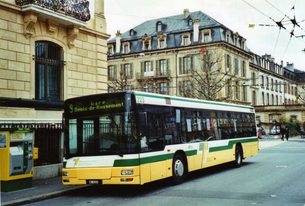 TN Neuchâtel Nr. 223/NE 32'123 MAN am 5. Dezember 2009 Neuchâtel, Place Pury