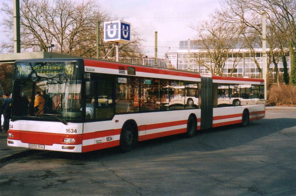 DSW 1634, ein MAN NG 263, aufgenommen im März 2003 an der Haltestelle Westfalenstadion in Dortmund.
