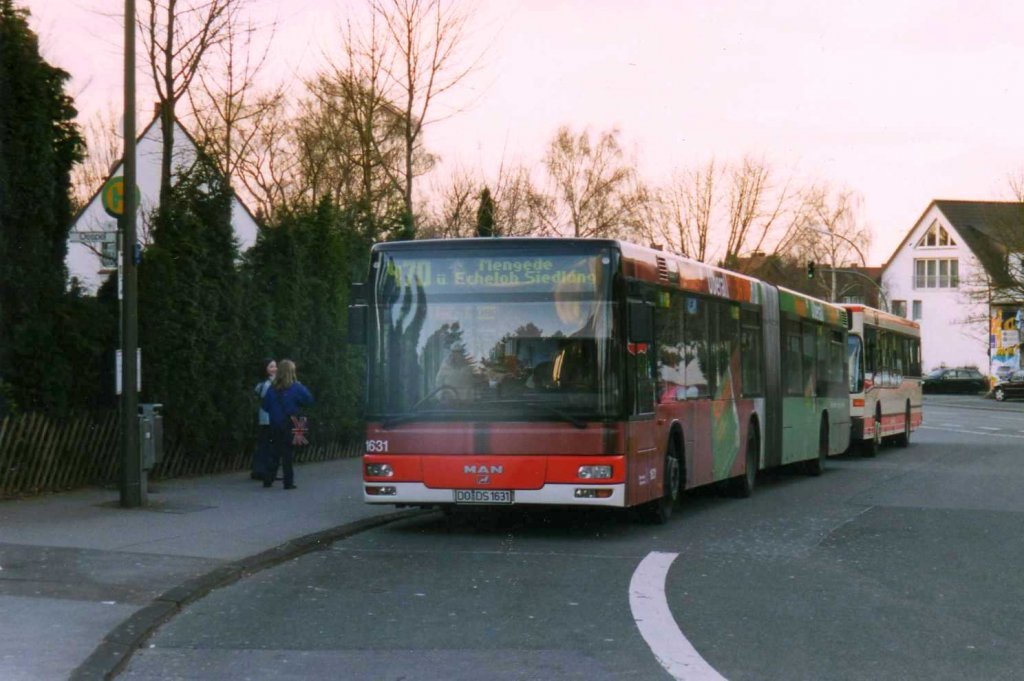 DSW 1631, ein MAN NG 263, aufgenommen im März 2002 an der Haltestelle Oespel Schleife in Dortmund.
