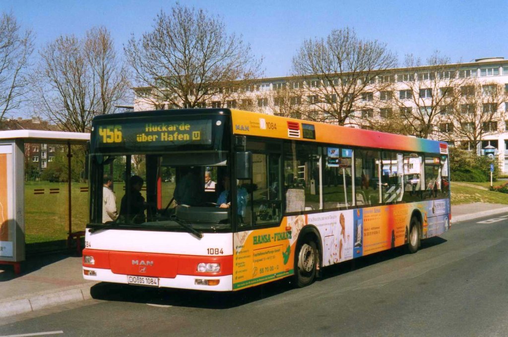 DSW 1084, ein MAN NL223, aufgenommen im April 2002 am Dortmunder Hauptbahnhof.