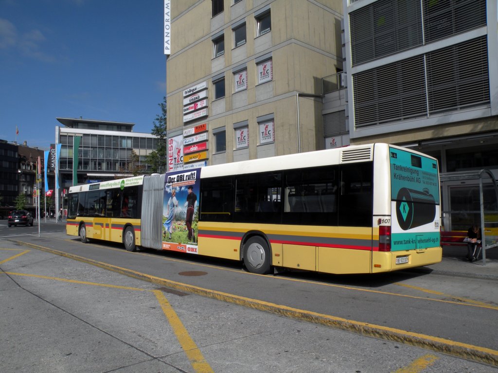 MAN Bus mit der Betriebsnummer 107 auf der Linie 21 am Bahnhof in Thun. Die Aufnahme stammt vom 12.10.2011.