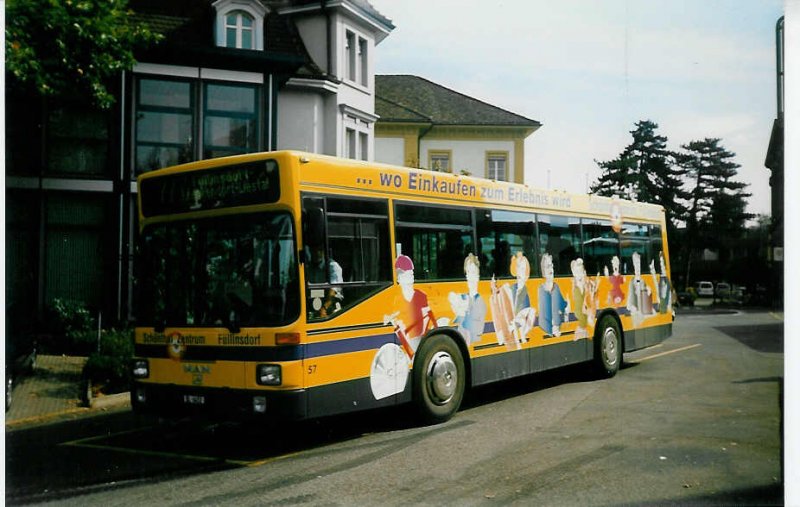 Aus dem Archiv: AAGL Liestal Nr. 57/BL 6452 MAN am 8. Oktober 1997 (mit Vollwerbung für das "Schönthal Zentrum")