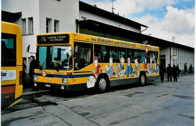 Aus dem Archiv: AAGL Liestal Nr. 57/BL 6452 MAN am 19. April 1999 Liestal, Bahnhof (mit Vollwerbung für das "Schönthal Zentrum")