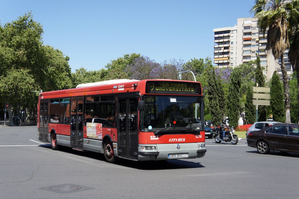 EMT Valencia (Stadtbus): Renault Agora Hispano, Wagennummer 5176 befährt die Avinguda de Blasco Ibáñez. Aufgenommen im Mai 2013.