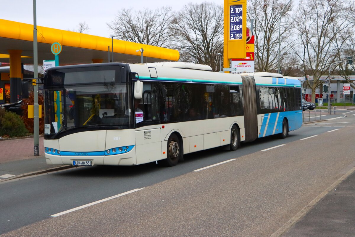 Omnibusbetrieb Keller Solaris Urbino 18 im Auftrag der ICB als SEV für die U7 am 13.03.26 in Frankfurt am Main