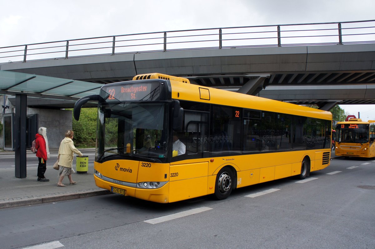 Bus Dänemark / Region Seeland / Region Sjælland: Solaris Urbino 12 - Wagen 3220 von Trafikselskabet Movia (Eigentümer Fahrzeug: Anchersen Rute), aufgenommen im Mai 2016 an der oberirdischen S- und U-Bahn - Station Flintholm in Kopenhagen.