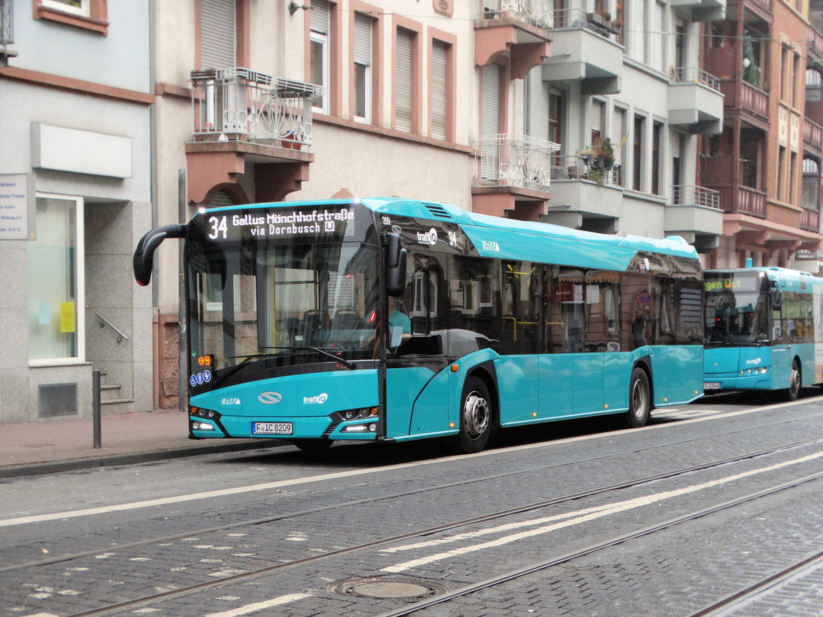 Nagelneuer VGF/ICB Solaris Urbino 12 Wagen 209 auf der Linie 34 in Frankfurt am Main Bornheim Mitte am 31.12.16