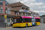 Der neue Solaris Urbino 18 IV Electric '12283' "BE 431 659" der PostAuto Regie Spiez am 19.12.25 beim Bahnhof Interlaken West.
