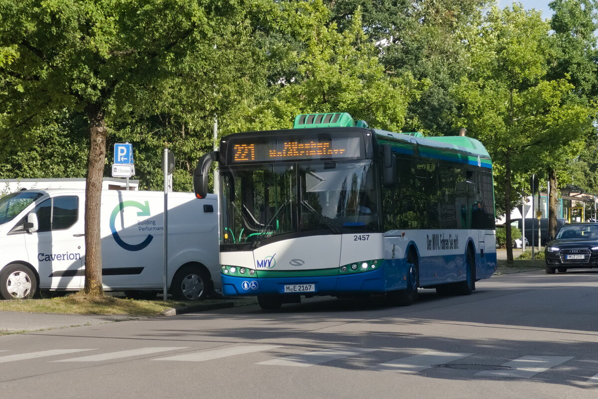 Solaris Urbino von Ettenhuber (Bus 2457, M-E 2167) als Linie 221 in Ottobrunn, Karl-Stieler-Straße. Aufgenommen 14.7.2022.
