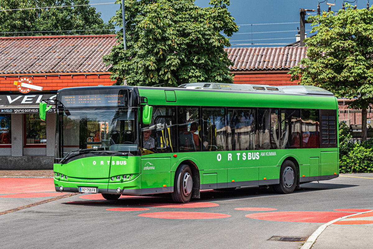 10.07.2024: Loacker Wagen FK-756 FR als ORTSBus Am Kumma, Linie 301 Richtung Götzis Oberer Berg in Götzis am Bahnhof.