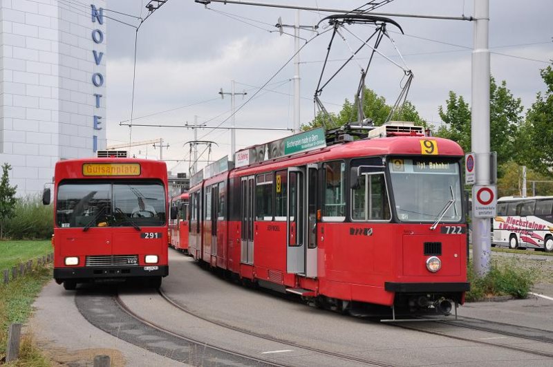 Bernmobil Nr. 291/BE 419'291 Volvo B10M und der Be 8/8 722 am 2. September 2009 beim Guisanplatz.