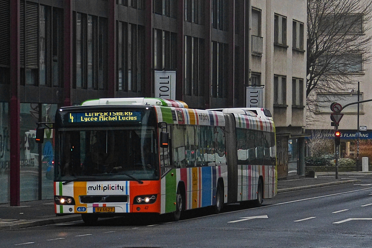 YV 6627, Volvo Gelenkbus des VDL, gesehen in den Straßen der Stadt Luxemburg. 28.12.2018