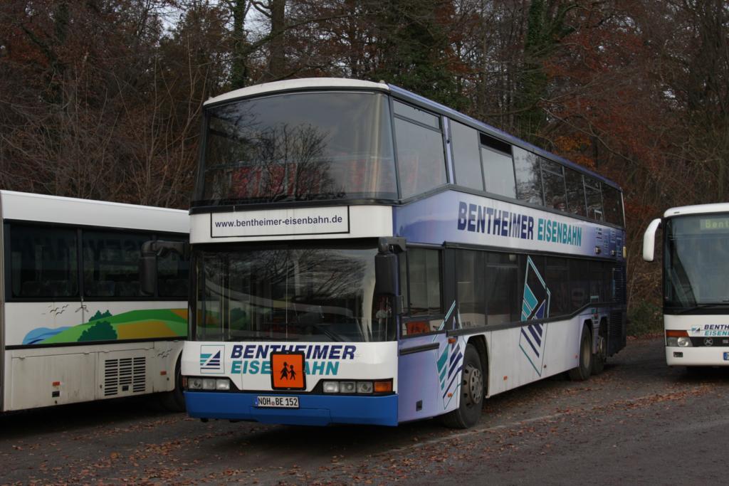 Neoplan Doppelstockbus der Bentheimer Eisenbahn am 2.12.2013 in Bad Bentheim.