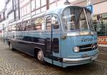 Doppeldecker-Aussichtsbus für Stadtrundfahrten in Cuxhaven (Cuxliner) am 13.05.2022 an der Haltestelle "Alte Liebe" im Hafenbereich.