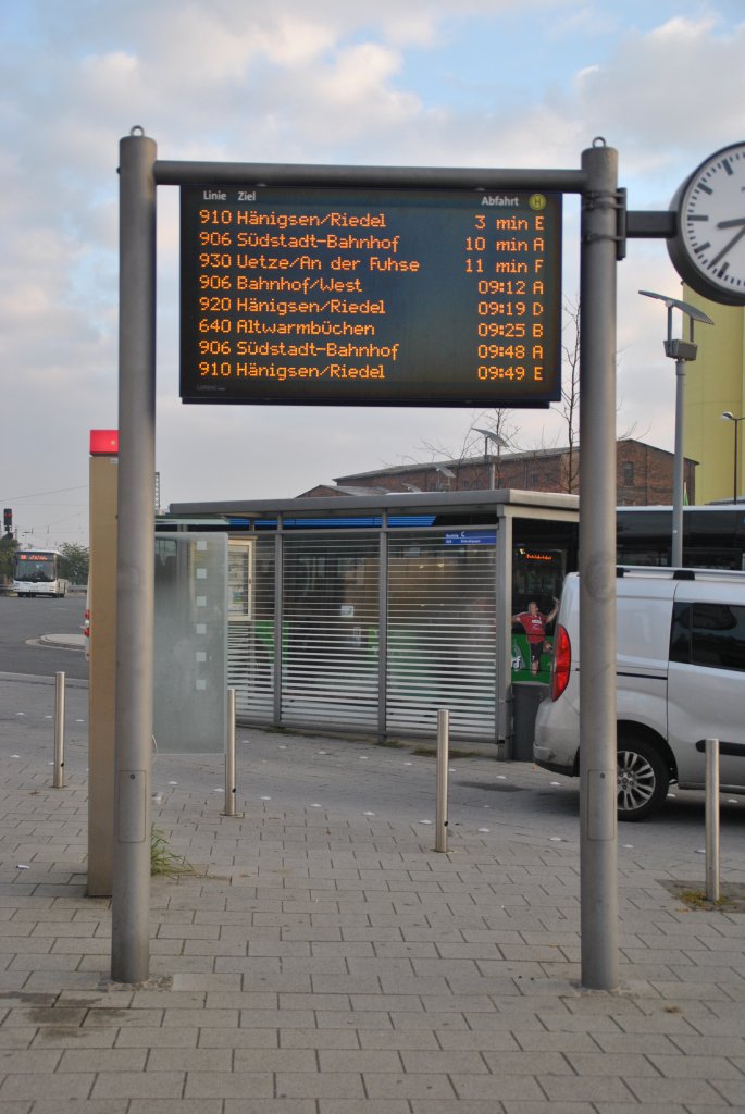 Abfahrtanzeiger in Bugdorf/ZOB. Foto vom 14.10.2010.