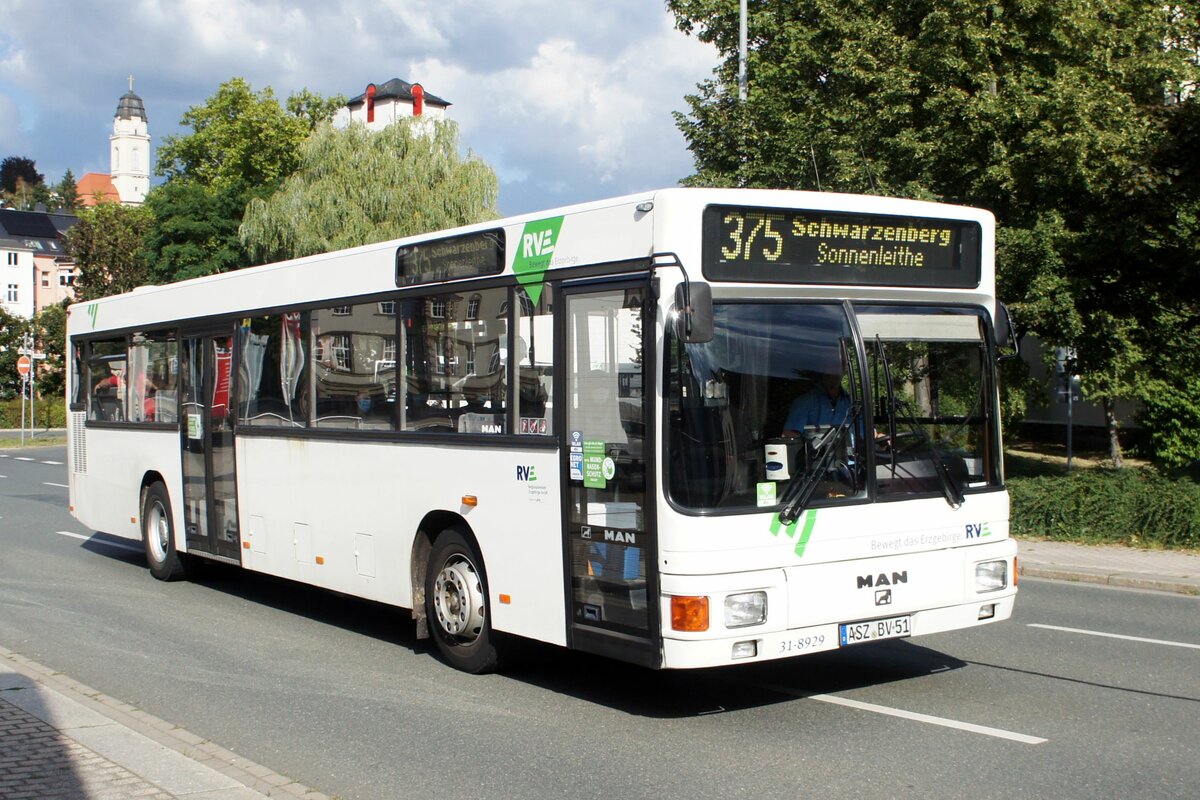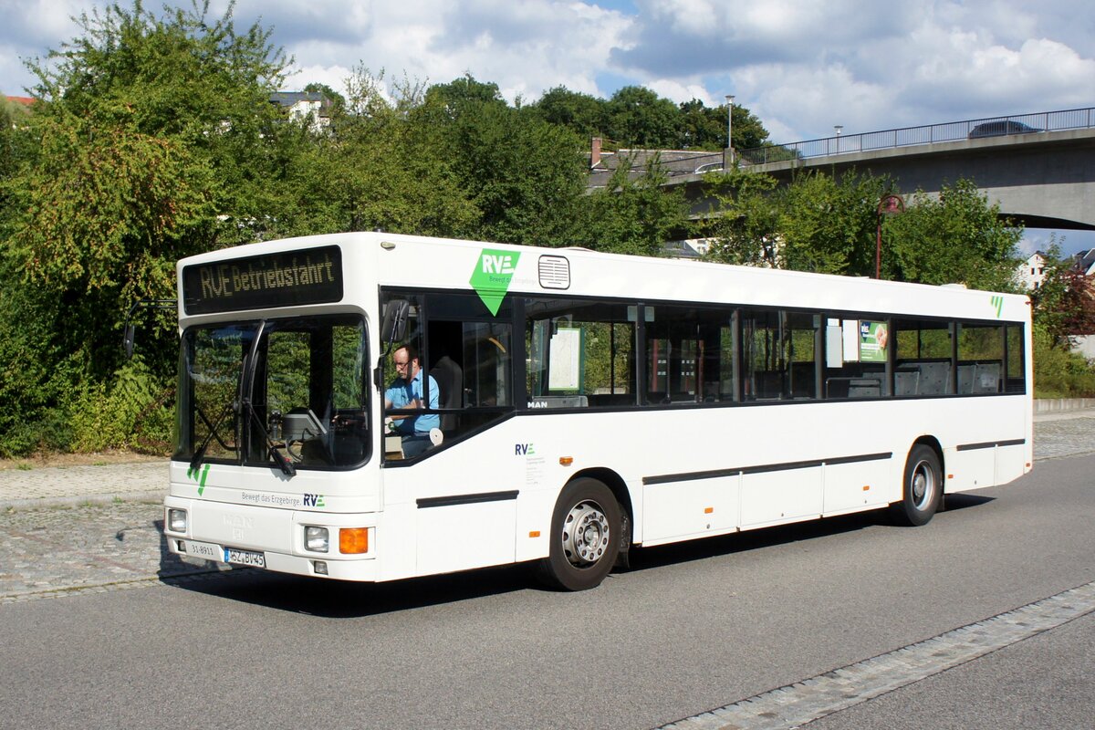 Stadtbus Zwickau: MAN Lion's City der SVZ Zwickau, aufgenommen im Juli 2018 am Hauptbahnhof in Zwickau.
