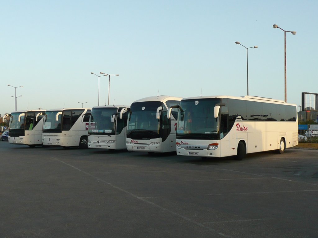 04.05.11,Transferbusse vor dem Flughafen Heraklion/Kreta.