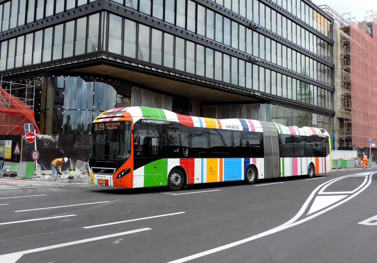 SY 7764, Volvo 7900 AH Hybridbus, Wagen 88, im Einsatz auf der Linie 20, am 20. Mai 2021 beim Hauptbahnhof abgelichtet.