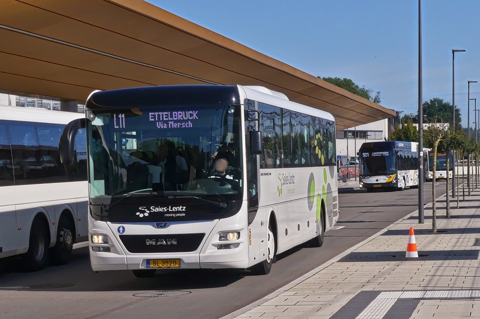 (SL 3410) Van Hool ExquiCity (Heckansicht) aufgenommen an der Haltestelle am Flughafen von Luxemburg. 22.01.2014