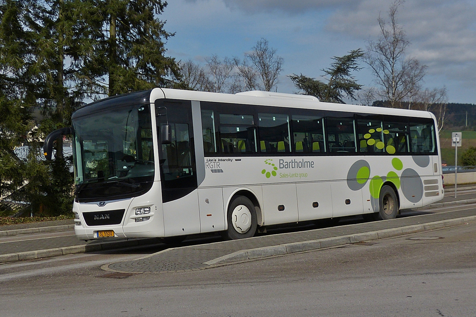 SL 5520, MAN Lion’s Intercity von Sales Lentz steht am Bus Bahnhof der Hochschule in Wiltz. 04.2023