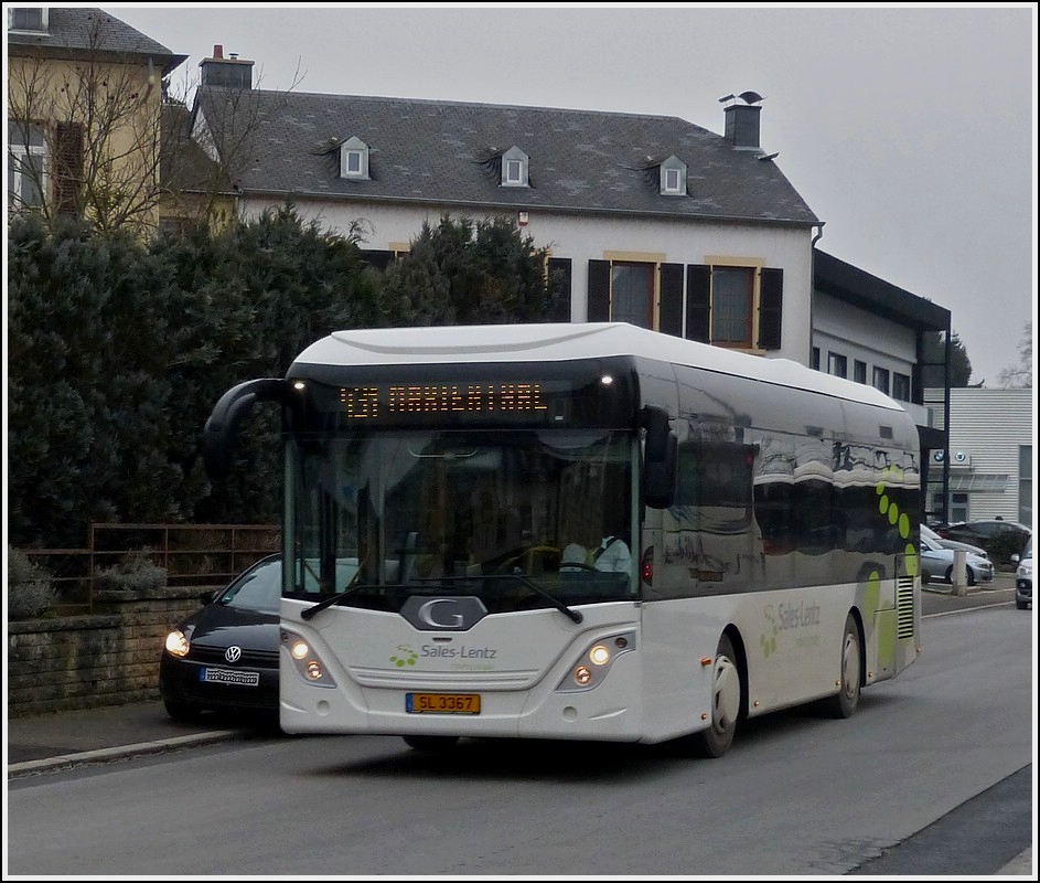 (SL 3367) Göppel Bus Typ go4city10 des Busunternehmens Sales Lentz aufgenommen am Bahnhof in Mersch am 08.04.2013.