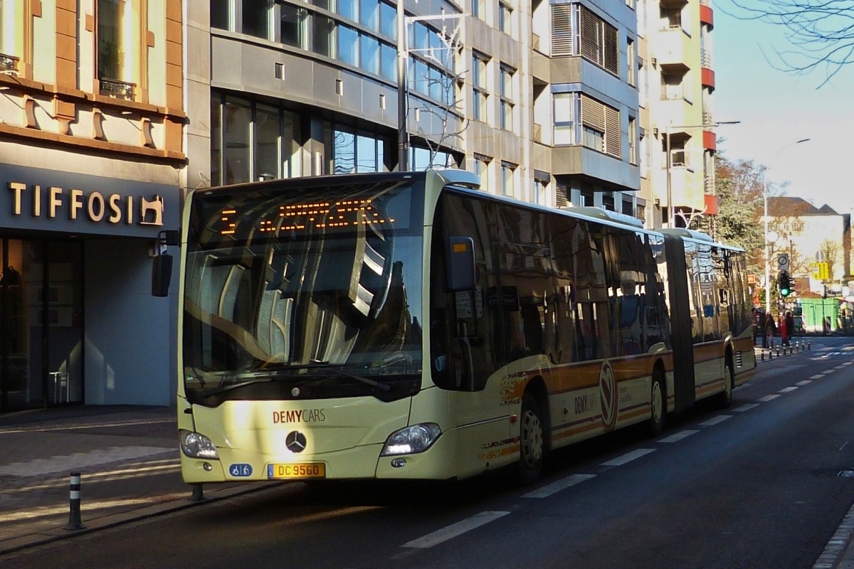DC 9560, Mercedes Benz Citaro von Demy Cars, auf dem Weg in Richtung Hauptbahnhof der Stadt Luxemburg. 04.12.2019