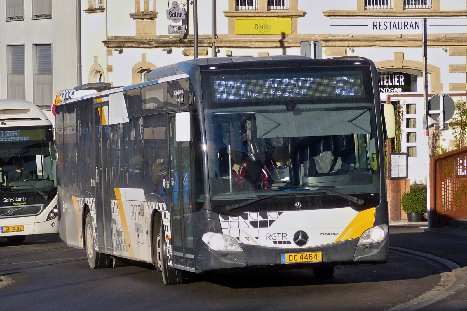 DC 4464, Mercedes Benz Citaro, von Demy Cars, hat seine Fahrt soeben von der Stadt Luxemburg nach Mersch begonnen. 12.2022
