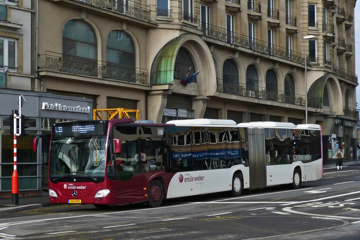 EW 1276 Mercedes Benz Citaro, von Emile Weber als SEV auf der Linie 10, von Dommeldingen bis zum Hauptbahnhof in der Stadt Luxemburg unterwegs. Aufgenommen in der Nähe des Hauptbahnhofs. 13.12.2020