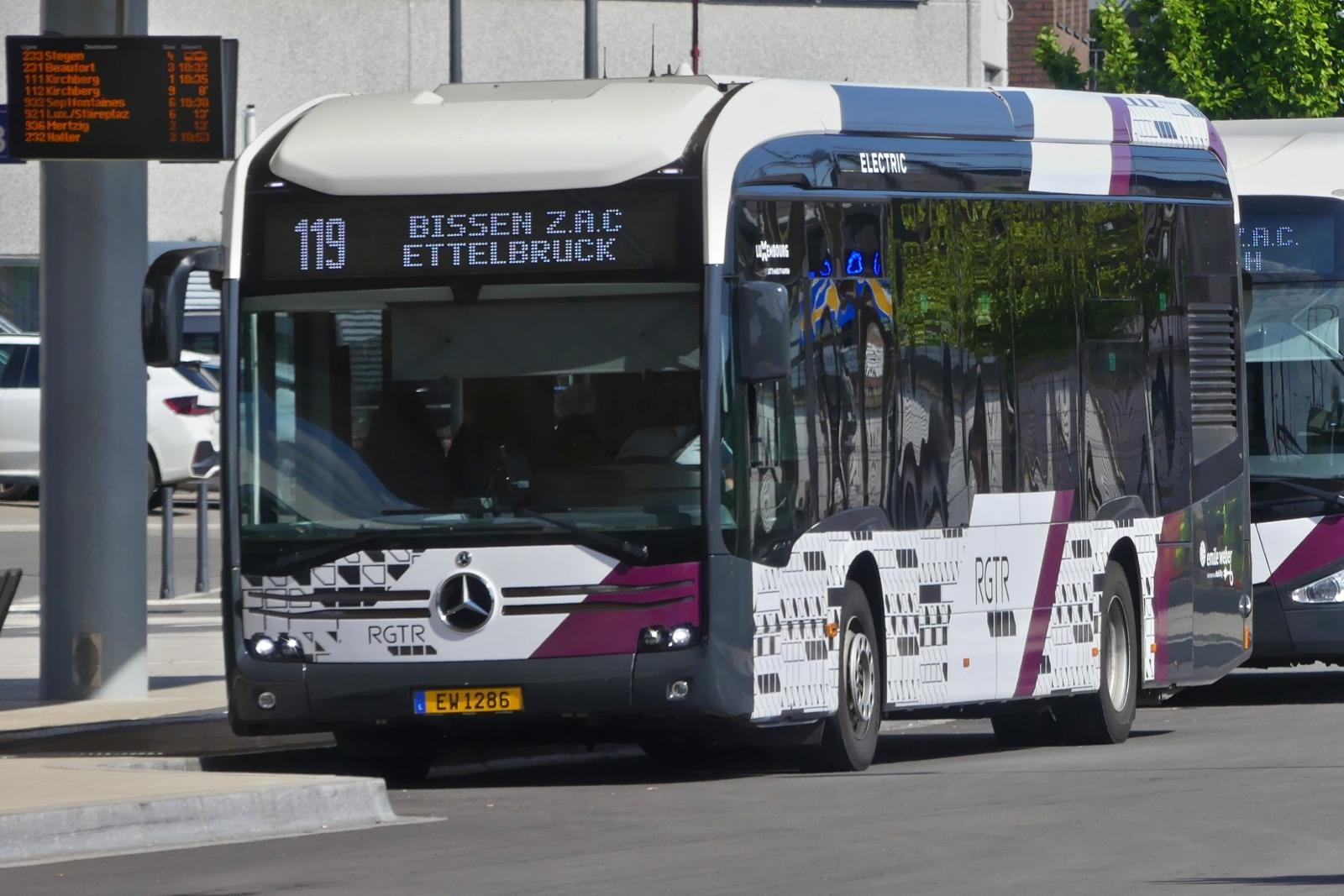 EF 1286 Mercedes Benz eCitaro von Emile Weber steht am Busbahnhof in Mersch. 05.2024