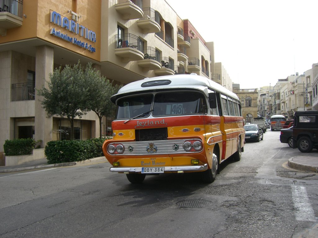 Ein typischer Malta-Bus am Berg in Mellieha, nach einer steilen Abfahrt erreicht dieser Bus in wenigen Minuten die Mellieha Bay, 21.11.2209