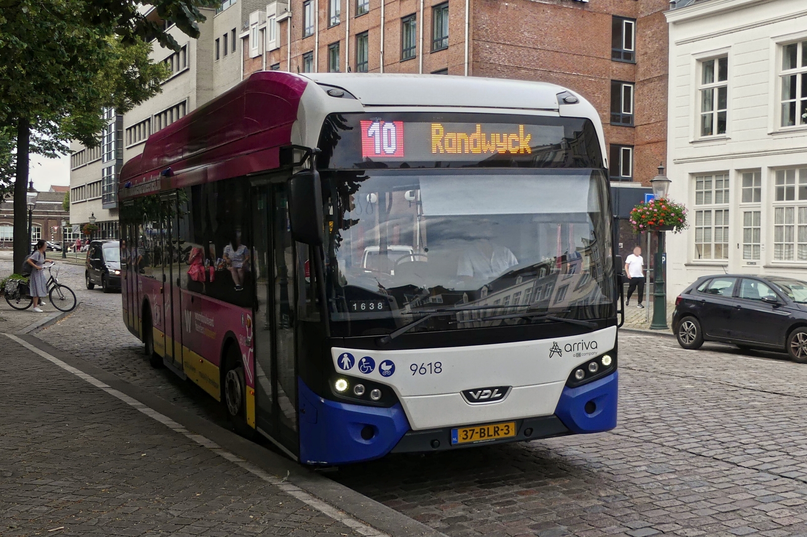 37-BLR-3, VDL eCitea mit Werbung, aufgenommen an einer Bushaltestelle in Maastricht. 07.2024