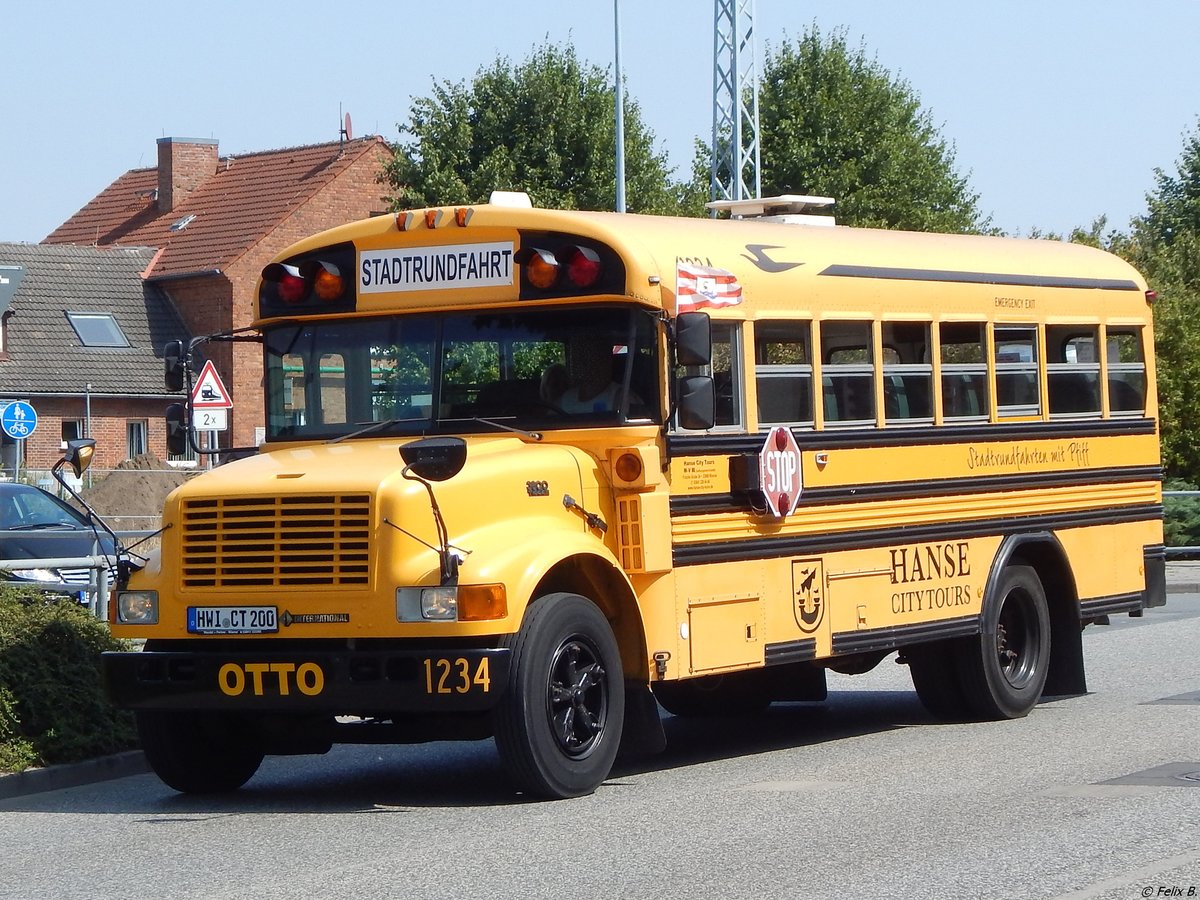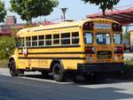 Oldtimer US Schulbus International 3500 auf Stadt Rundfahrt durch Maastricht unterwegs. 05.2023